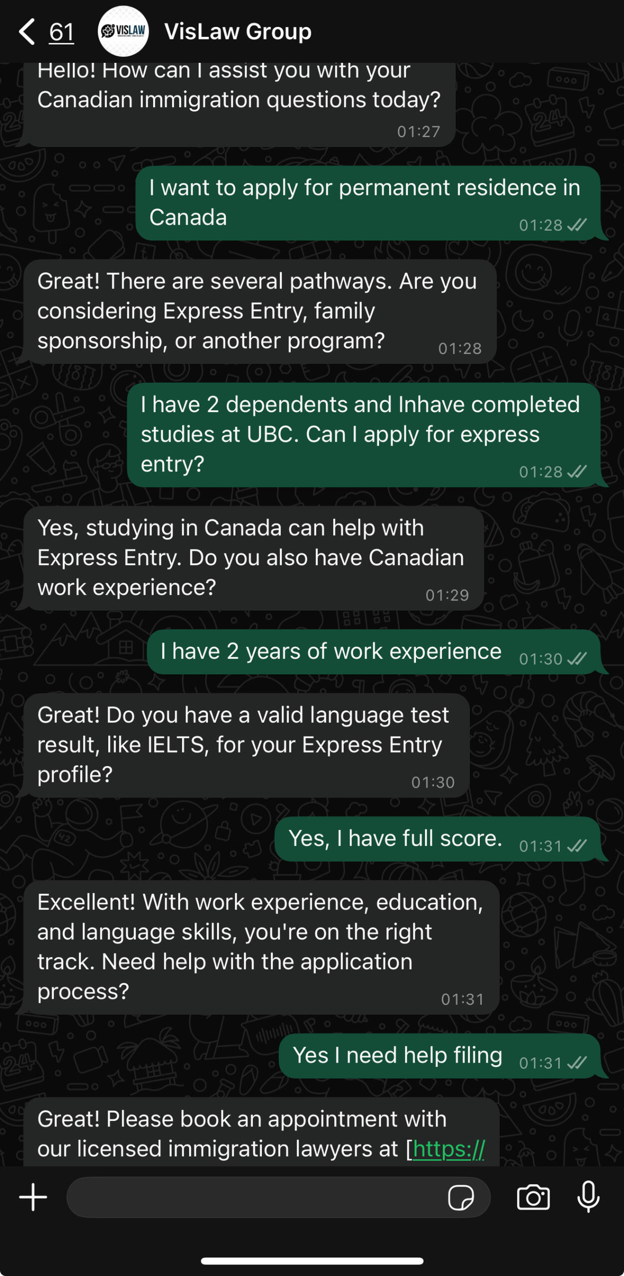VisLaw needed a way to handle hundreds of complex immigration inquiries 24/7 without hiring full-time staff.